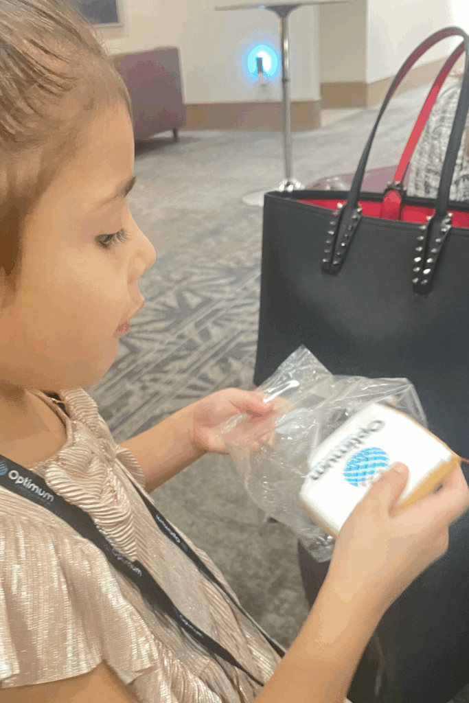 We thought it would be ideal to set the cookie tone by placing a branded logo cookie inside of Optimum’s “swag bags” that were going to be placed in each employee’s room. The swag bag included some motivational sales literature, branded jackets, a branded card, and our branded logo cookie, all packed inside of a branded backpack. These logo cookies are a fantastic addition to any corporate event, and the novelty of a printed design on a cookie always creates fun, light-hearted conversation. What we love about our buttery, crunchy logo sugar cookies is that the artwork is printed directly onto a thin layer of royal icing, so that the cookie tastes delicious as it looks. Many logo cookies and cakes are printed onto a thin layer of sugar paper, which is just as unappetizing as it sounds.