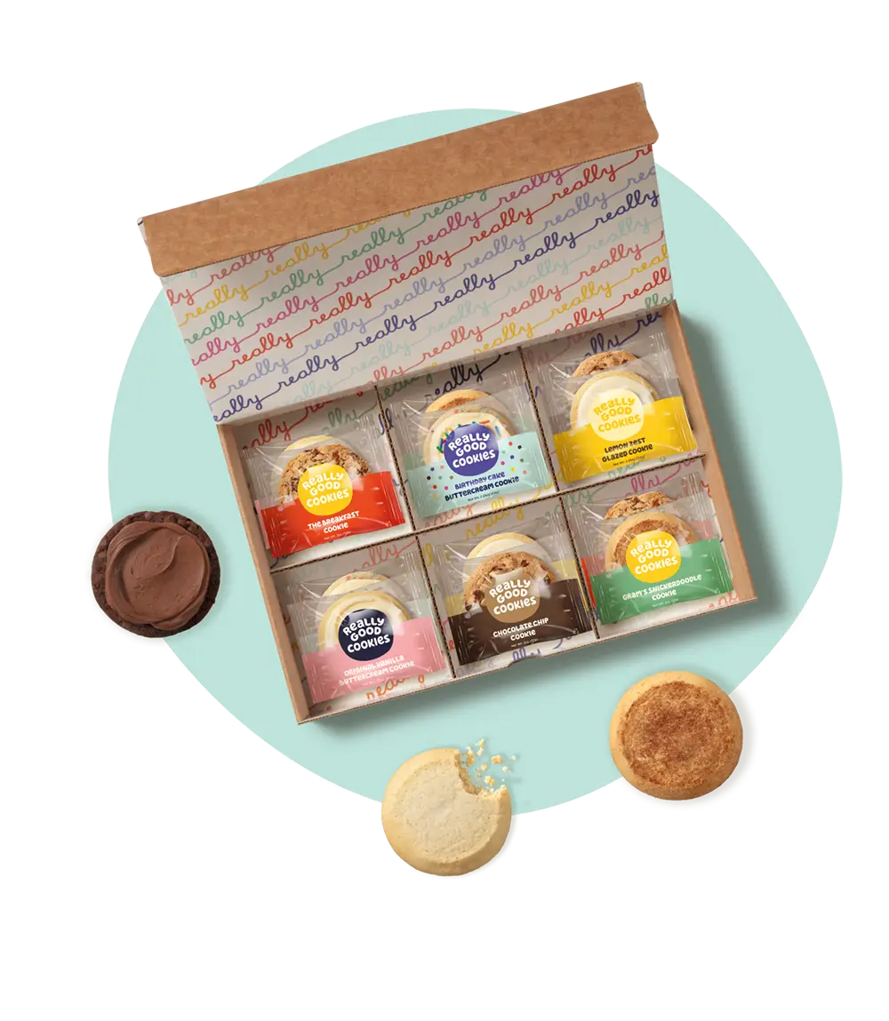 We make corporate gifting simple and stress-free. Every cookie is freshly baked, beautifully packaged, and designed to make a Really Good impression. Choose from: