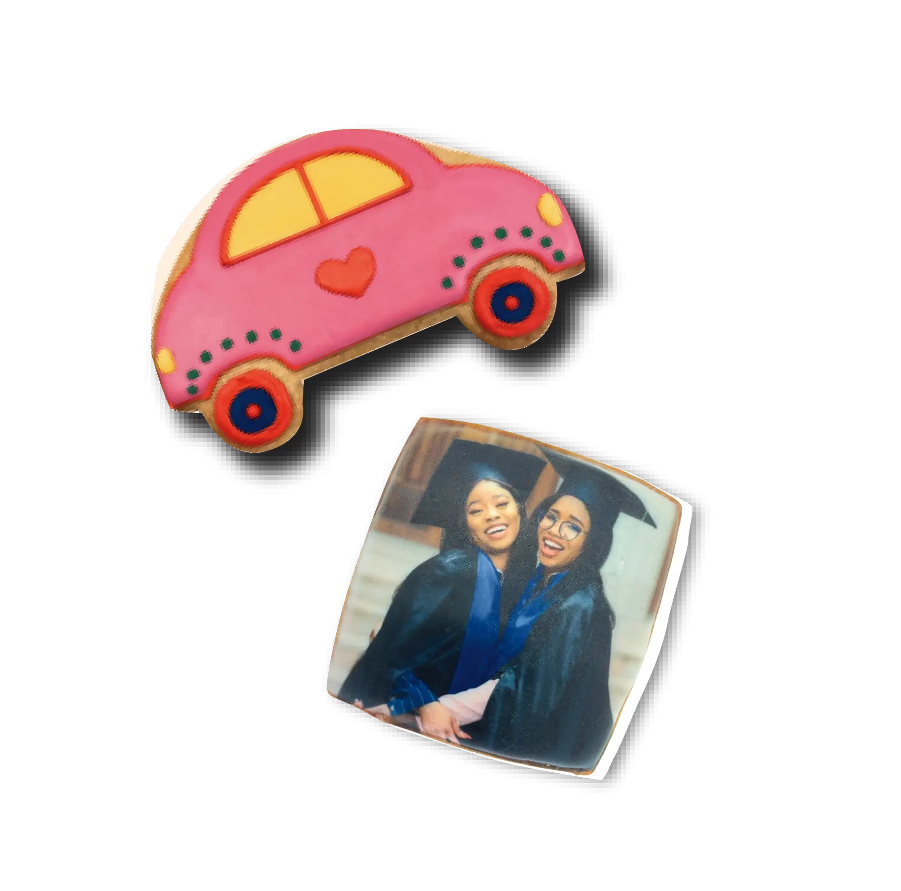 Our custom-decorated cookies and logo cookies are baked with our classic buttery, crunchy sugar cookie recipe.